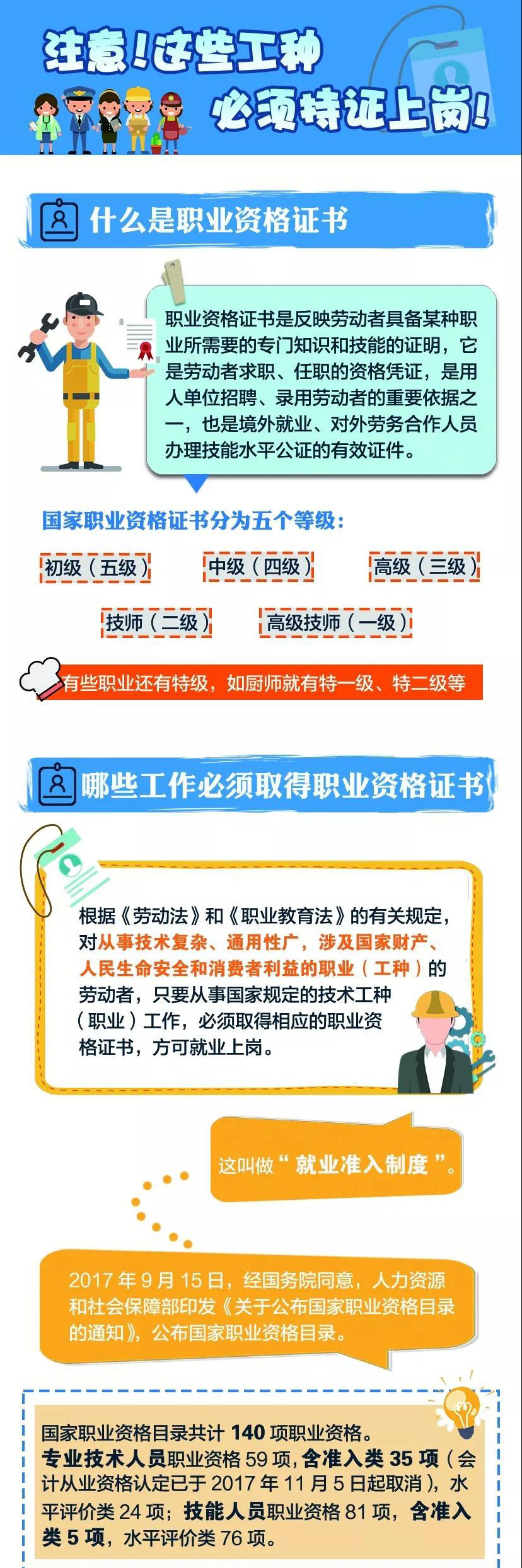 根据国家职业资格目录,准入类专业技术人员职业资格仍有35项,准入类技能人员职业资格仍有5项。这也意味着,仍有40项职业需要“先考证,再上岗”。