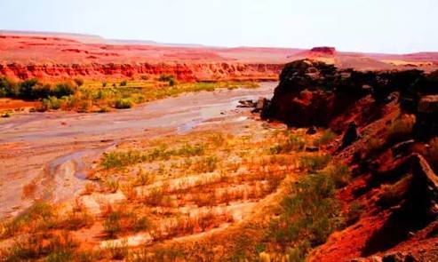 大多数时间里,谷地的流水清澈见底,水流湍急,在阳光的照射下发出片片粼光;河谷崖壁上飘向远方的红土汇成的飘带,向前绵延十几公里,构成我们眼前看到的这幅美妙绝伦的风景画。每逢春季,红河谷依靠水源便长出许多花草,有的高、有的矮,沿着溪流,布满整个谷底。这里犹如世外桃源,又如人间仙境,透着几分神秘色彩;它远离城市的喧闹,除了微微的细风和哗哗的流水声,宁静成为这里的主旋律。
