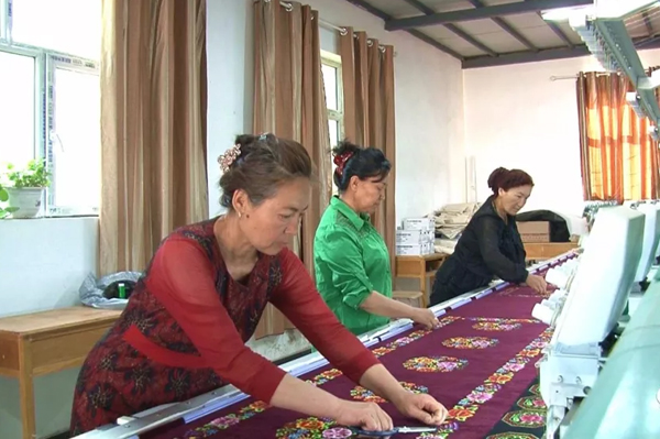 5月15日,记者见到哈力古丽时,她正在和社员们赶制一批被套刺绣产品。哈力古丽告诉记者,刺绣农民专业合作社成立于2013年,当初有20名员工,现在有50名。2016年,得益于自治区惠民项目的支持,合作社进一步扩大了规模。