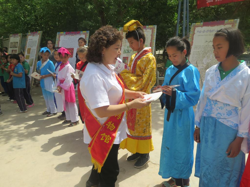 为宣传和弘扬吐鲁番灿烂的历史文化,有效发挥博物馆“爱国主义教育基地”的社会职能,增强青少年爱国主义精神,2017年5月31日,吐鲁番博物馆联合洋海文管所在鄯善县吐峪沟乡泽热甫小学举办“让文化遗产融入校园”宣教活动,吐峪沟乡泽热甫小学200多名师生参与了本次活动。