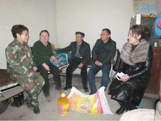 www。57365。com讯:1月24日下午,托克逊县夏乡布拉克佰什村干部、“访惠聚”工作组成员和第一书记一起带四袋面粉、四桶食油去本村的四老人员库尔班·买买提、困难党员阿扎迪古丽·艾尔西及老党员杜凤、夏热甫汗·卡德尔等四家进行春节之前的慰问活动。