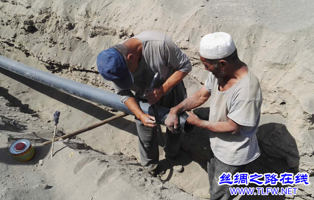 “买买提、艾合买提、阿里木……你们几个负责挖坑,热西提、托乎提、沙拉木……你们几个负接管子,女人们也帮忙挖一下,大家热了就喝点水,天热了大家就休息休息,下午天凉快点大家再接着干。”三组的队长阿帕·艾提积极动员群众,“我们大家要珍惜这个好机会,渠修好了,秋天在渠两旁栽些树,以后夏天我们就可以在树下乘凉,我们的村就会变得更美了……。”